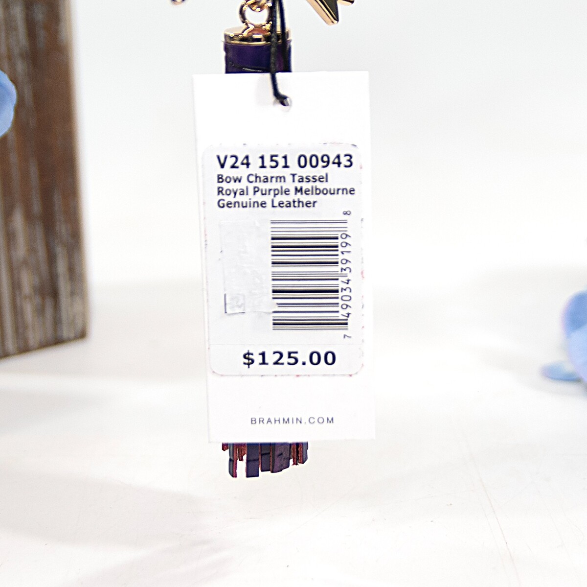 Brahmin Royal Purple Melbourne Leather Crystal Bow Charm Tassel Bag Charm NWT