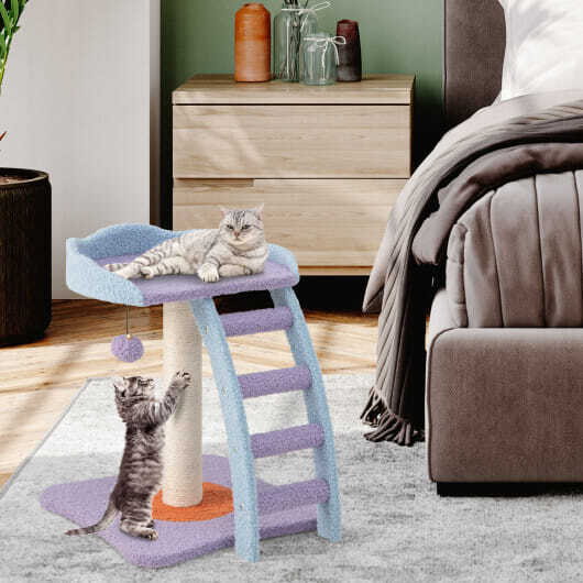 19 Inch Mohair Plush Cat Tree with Ladder and Jingling Ball-Purple - Color: Purple