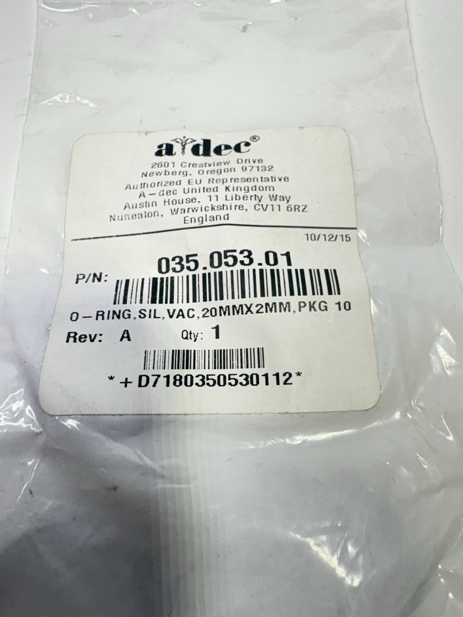 Qty-10 A-DEC 035.053.01 Dental Equipment Silicone Vacuum O-RING 20mm X 2mm