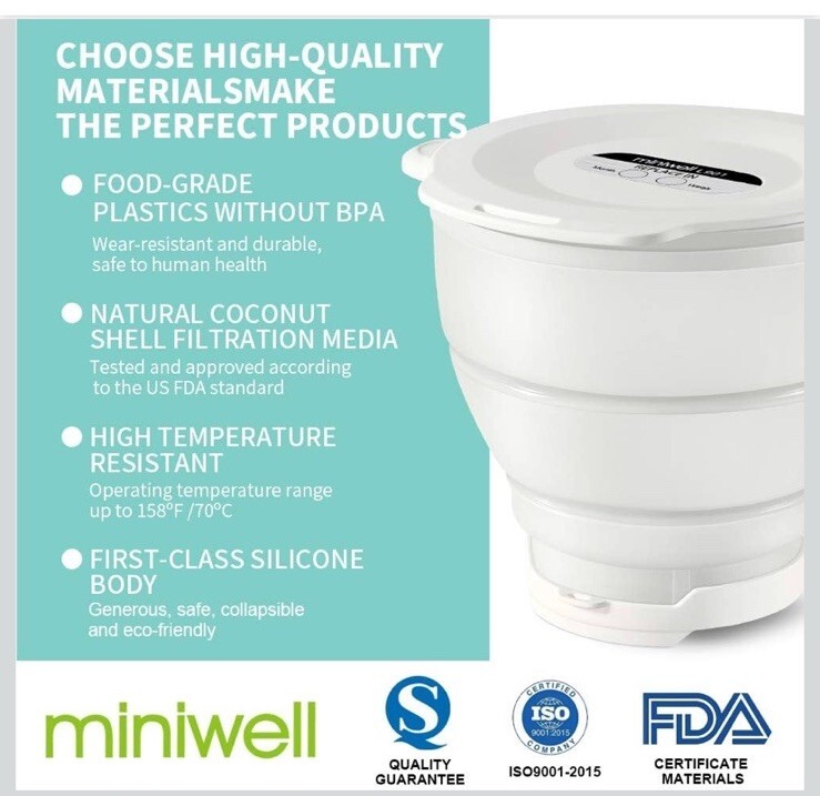The Collapsible Filtration System by Miniwell, model L901-01, is a versatile water filter pitcher designed for camping or outdoor use. With a maximum flow rate of 2.0 gallons per minute, this white plastic filter pitcher utilizes activated carbon purification method to provide clean and safe drinking water. The gravity-fed filtration system is easy to use and maintains a capacity of 100 gallons. Perfect for filtering water on the go, this compact and lightweight filter pitcher is a must-have for any outdoor adventure.