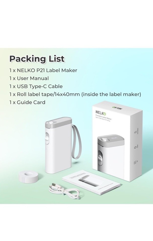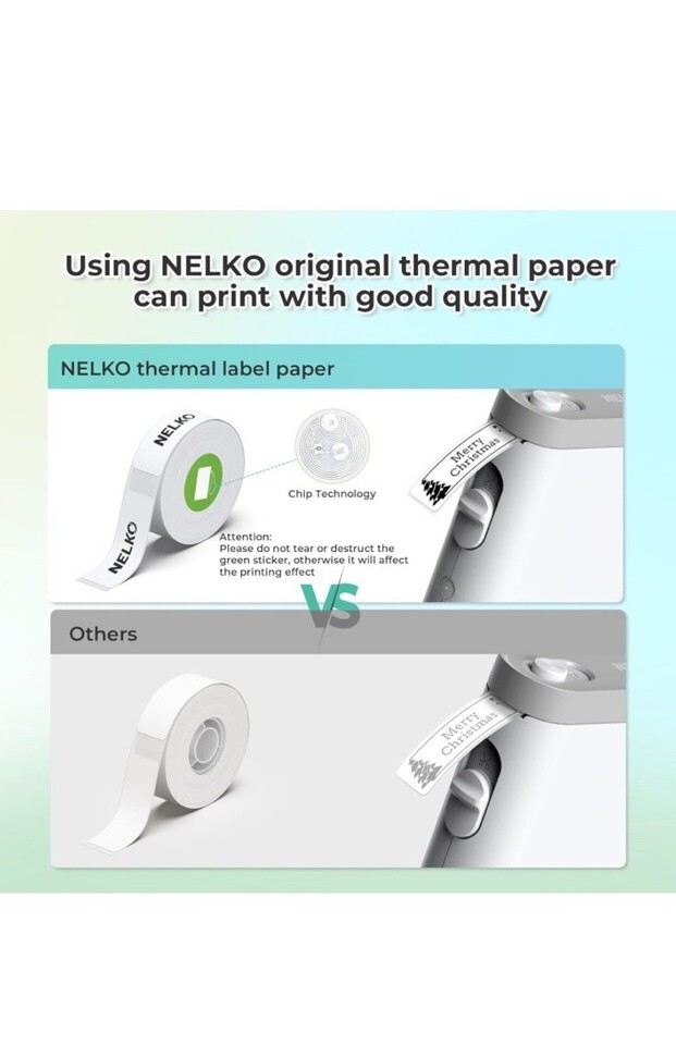 Nelko P21 Bluetooth Label Printer White with 14x40mm 100pc Roll and 14x40mm