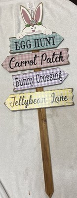 Bunny Road Sign—Wood Garden Stake— 36" X 13"—NEW—SHIPS IN 24 HOURS—