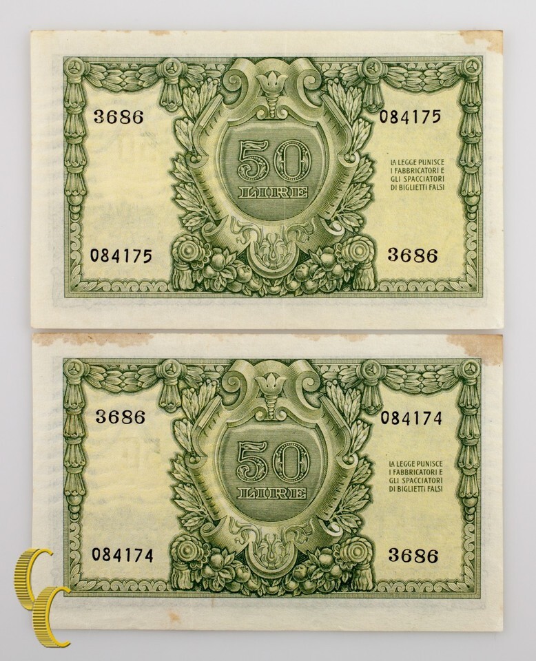 1951 Italy 2 Sequentially Numbered 50 Lire and similar items