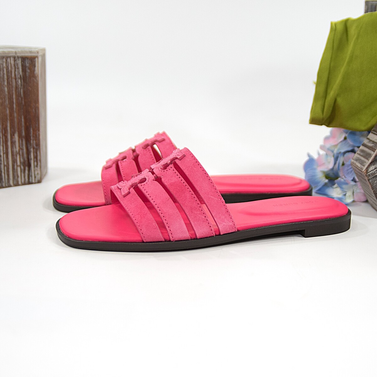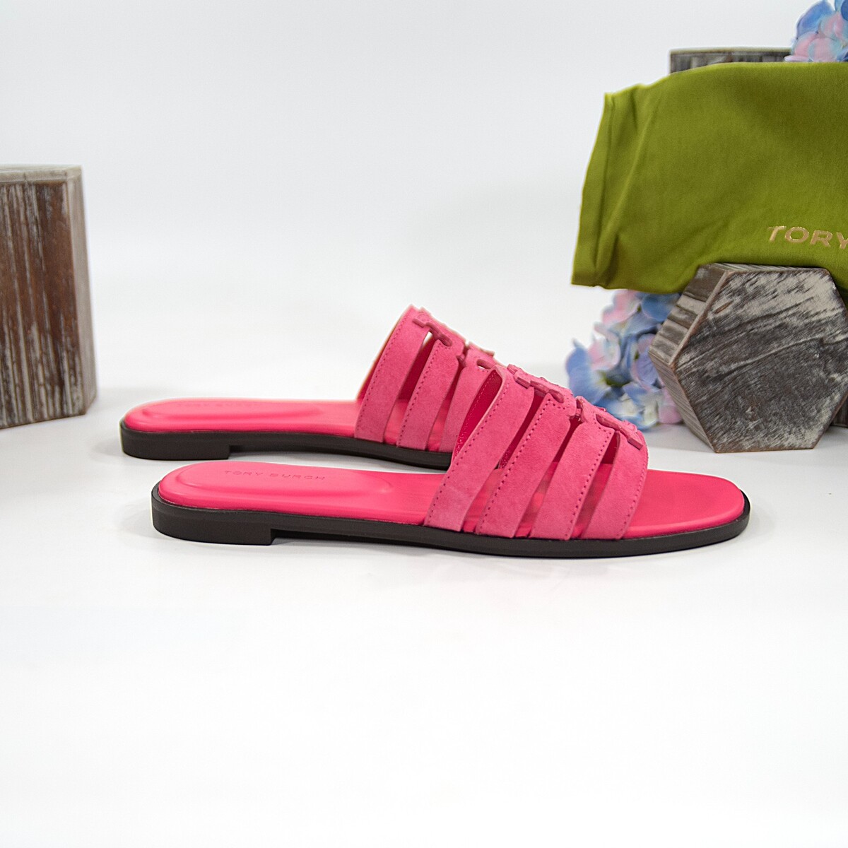 Tory Burch Ines Fuschia Pink Suede Leather Cage Slide Sandals Size 6 NIB $250