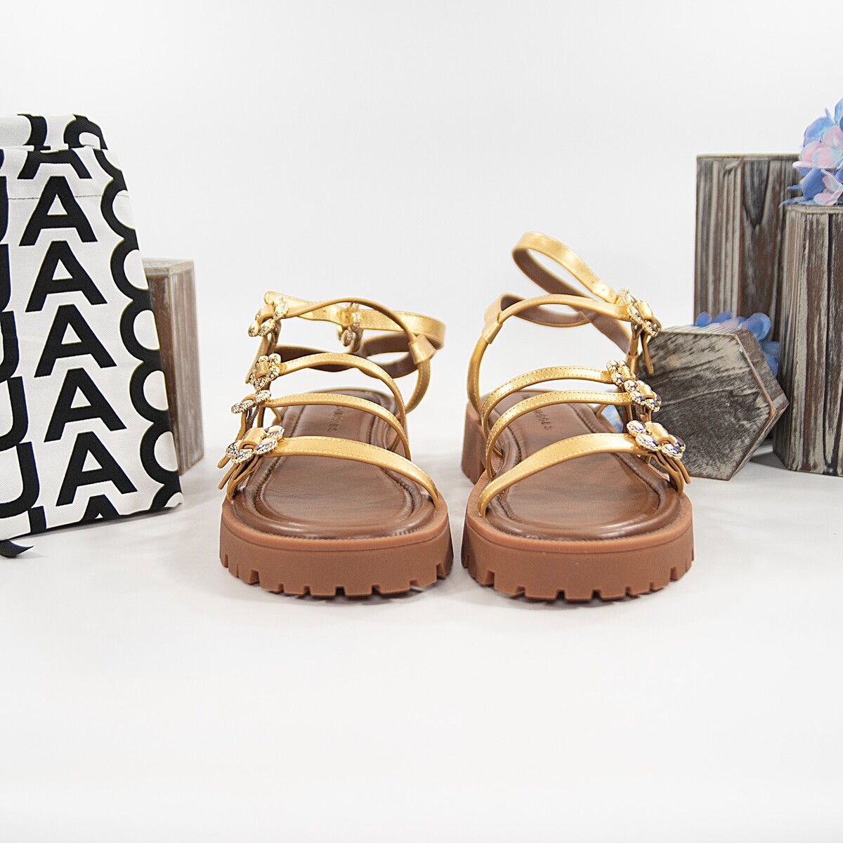 Marc Jacobs The Kiki Gold Leather Cage Gladiator Flower Sandals Sz 9 39 NIB $295