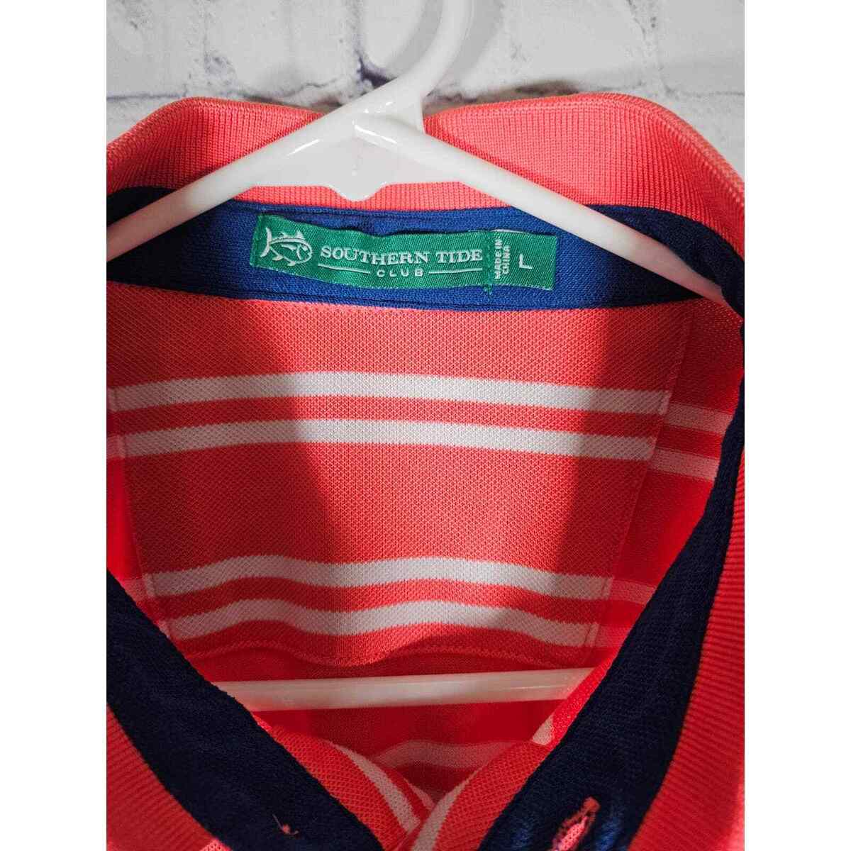 Southern Tide Mens Polo Short Sleeve Orange White Stripes Size Large