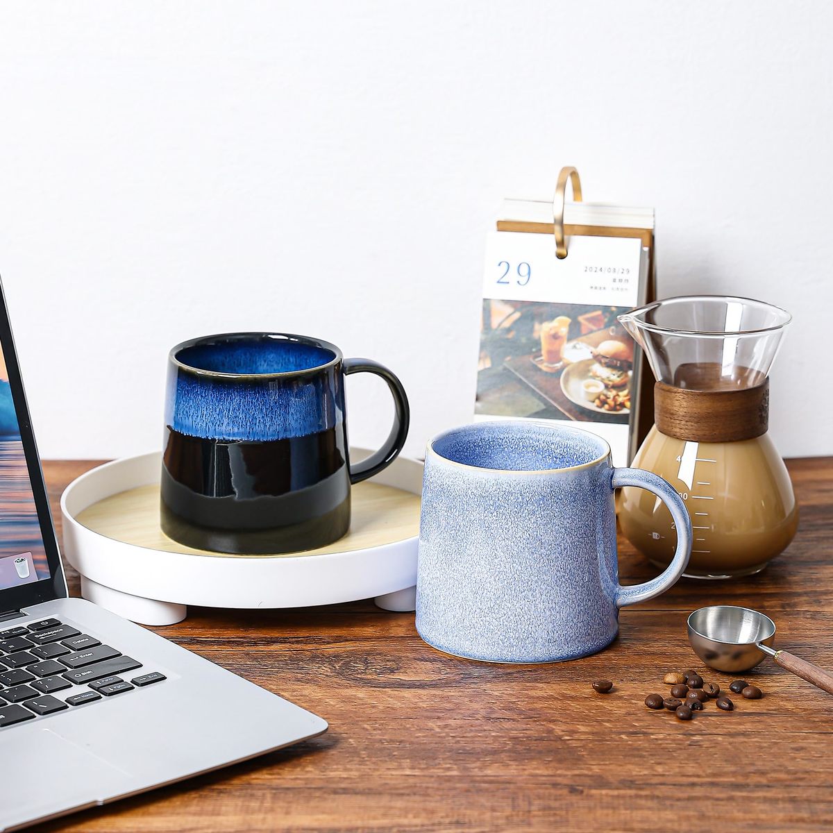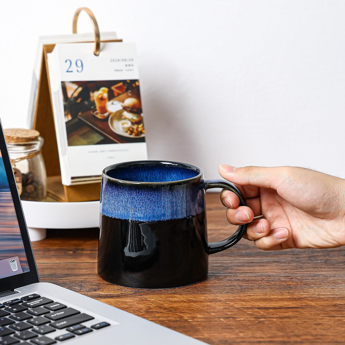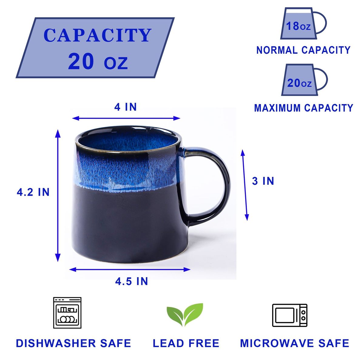 LARGE COFFEE MUG: This ceramic coffee mug has a 20 oz large capacity enough to meet daily needs. It has a large handle and is very comfortable to hold, sturdy wide base makes the cup very stable,HIGH QUALITY MATERIAL: The mug is made of lead-free, cadmium-free, premium ceramic and glaze, solid and beautiful, and the ceramic hold the heat very well. Dishwasher and microwave safe,GREAT GIFTS: Our handmade ceramic mugs are good as gifts for family and friends, suitable for various occasions like Christmas, Valentine's Day, Mother's Day, Father's Day, birthdays or other special days,UNIQUE GLAZE: The special reactive glaze technology make each ceramic mug unique technology, the color variation in the glaze is gorgeous, smooth glaze for easy cleaning,SAFE PACKING AND AFTER-SALES: High quality EPE cotton packaging ensures safe transportation. If you have any questions after purchase, please feel free to contact us, we will glad to help you solve the problem
