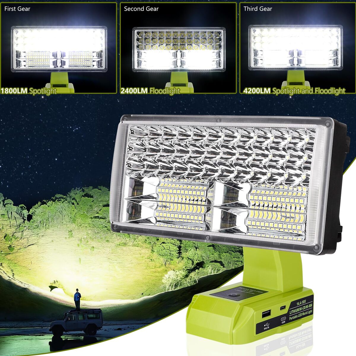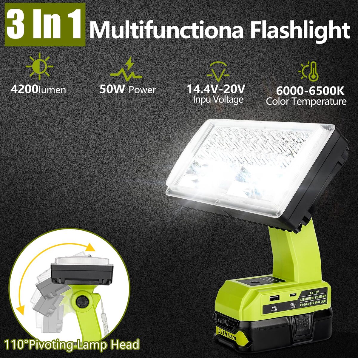 The lamp work with Ryobi 14.4V-20V lithium-ion battery,could keep very good balance on flat place for free your hands,An ideal lantern for illuminating outdoors or indoors. Compatible with Ryobi 18V Lithium Battery: