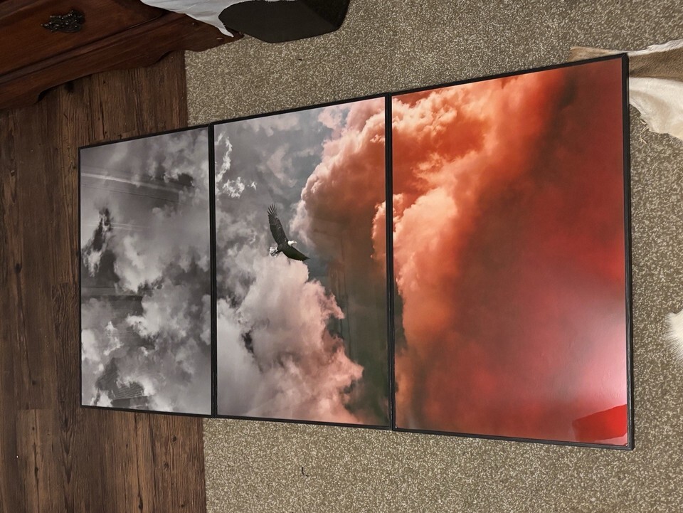 3 Piece Triptych Wall Art- 23L”x16W”(69L”-48”W) Soaring Eagle/Red And Black