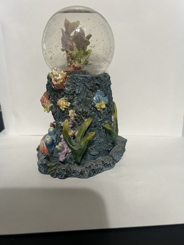 This colorful underwater snow globe features friendly dolphins surrounded by coral, fish and shells. The intricate details of this figurine will make it a great addition to any collection of marine life memorabilia. The dolphins are expertly crafted with a snow globe design that adds a touch of whimsy to any display. Perfect for collectors of dolphin figurines or those who appreciate unique and beautiful marine life.