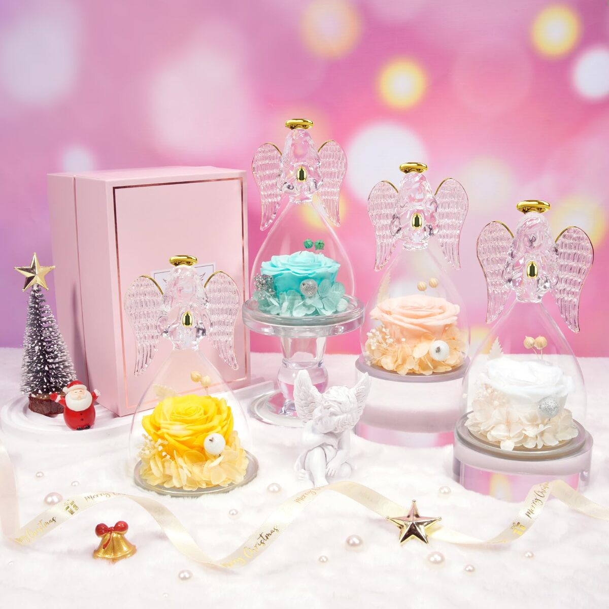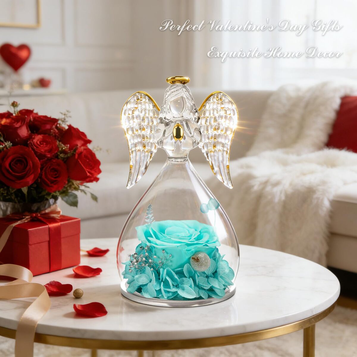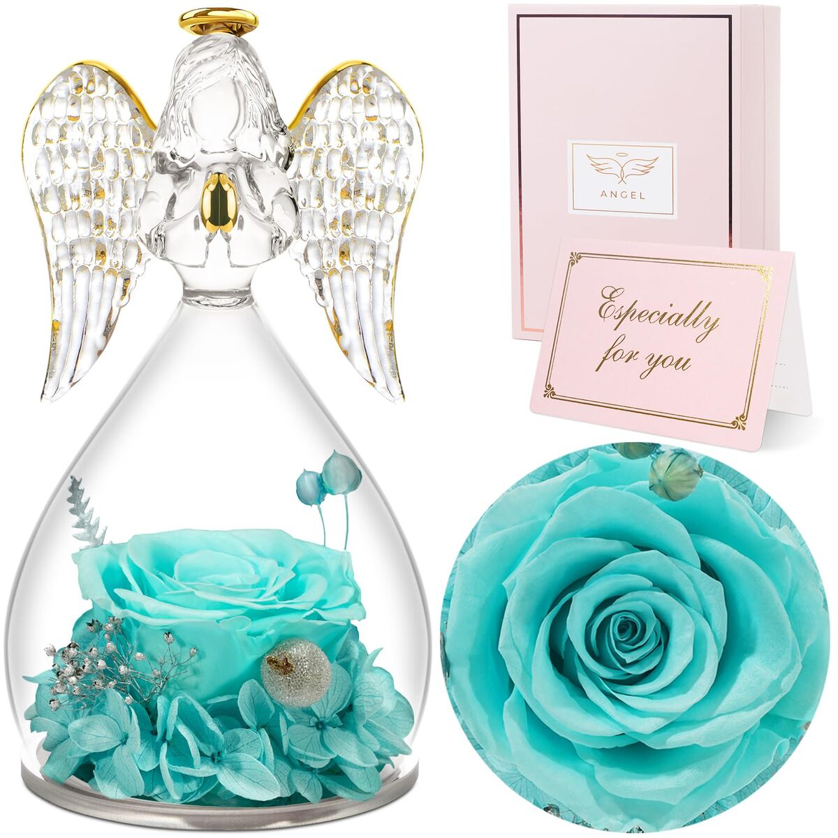 ANGEL GIFTS - sunia Angel represents guardianship and blessing, and the preserved rose flower represents eternal love and beauty. The combination of angels and roses represents both love and blessing. Best wishes to your loved ones,REAL ROSES - Angel Rose Figurines is 100% made of premium natural rose with proffesional preservation process that keeps the florals in their original color, shape and smell. Preserved Fresh Flowers could last about 3-5 years, which shouldn't be exposed in the humid environment or under direct sunlight. The glass cover was sealed and can't be opened, suitable for all the people (including those who are sensitive to floral plants),SIZE WHAT IS INCLUDED - The diameter of the angel is 3 inches and the height is 5.2 inches. The packaging contained, a glass angel figurine, a beautiful box, and a great heavy duty card. Our guardian angel figurines come with everything needed to present it as a flower gift, you don't have to buy wrapping paper or a card,MULTIPLE OCCASSIONS - Our angels figurines come with a gift card where you can write down what you want to say to express your love and blessings. This is a great gift for Valentines Day, Birthday, Party,Wedding, Mother's Day, Graduations,Teachers? Day, Anniversaries, Retirement, Funerals; Creative Valentines Day gifts for female eldership, lovers, children, friends, company staff and so on. Besides, it is very suitable for home decor, office arrangement, party wedding decoration,Please note?1. Due to the delicateness of natural flowers, opening the glass dome is not recommended as it can lead to unintended damage to the flowers. 2. Since these are real flowers crafted by hand and not mass-produced by machine, there may be slight variations in certain cases. 3.The Preserved Flower Rosewas securely encased in foam within the box, which greatly reduces the possibility of the product being damaged in shipping