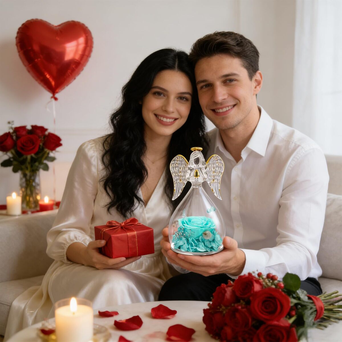 Sunia Valentine Rose Gift for Women Mom Grandma, Preserved Angel Figurine