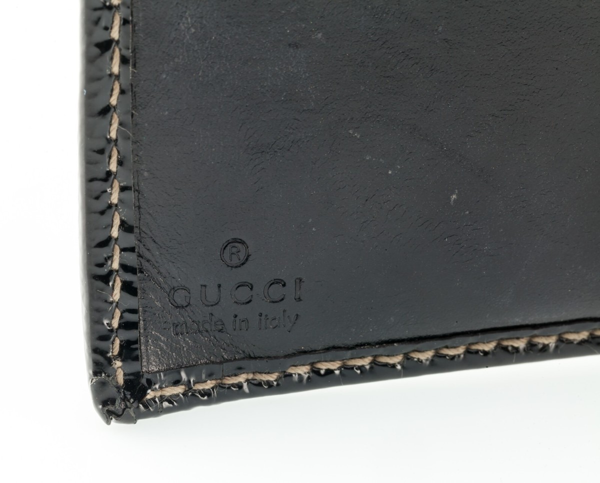 Gucci Cartera Bifold Compacta De Cuero Patente Negro Bonita!