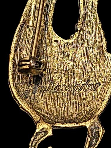 Ambassador Signed Vintage 1960's Gold Tone Road Runner Repousse Pin Brooch