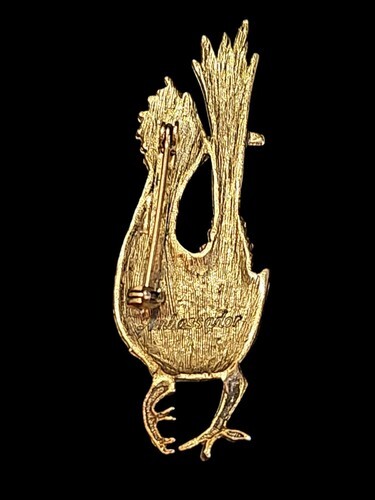 UP FOR SALE: Vintage Gold Tone Road Runner Brooch Pin by Ambassador