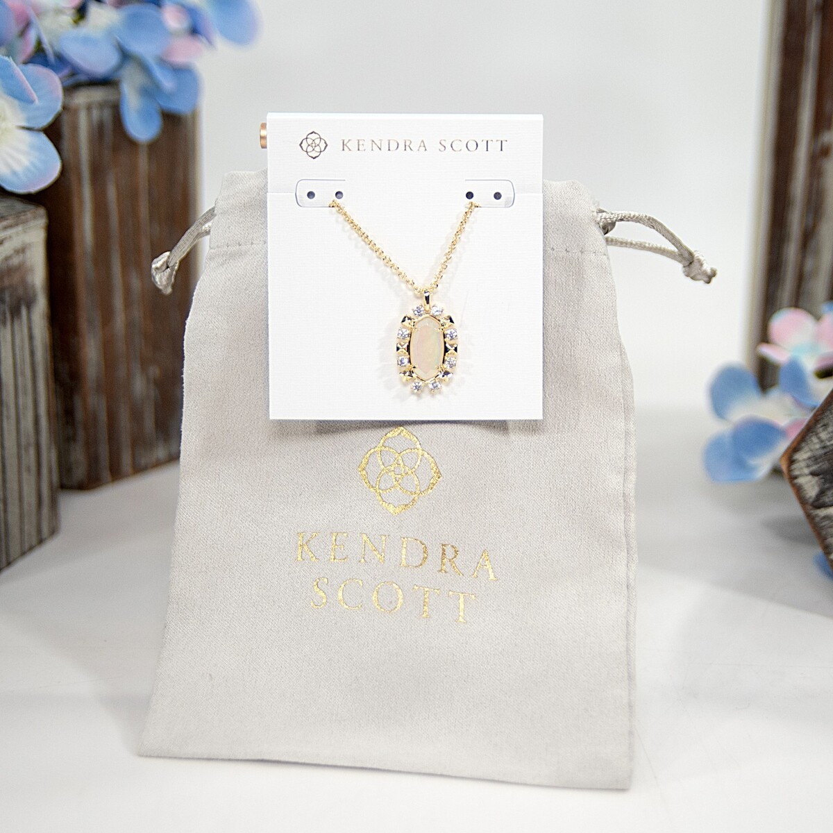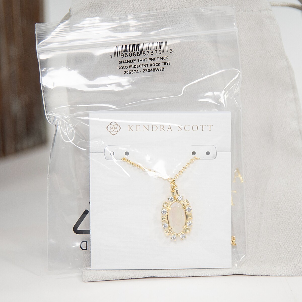 Kendra Scott Shanley Iridescent Crystal Gold Plated Short Pendant Necklace NWT