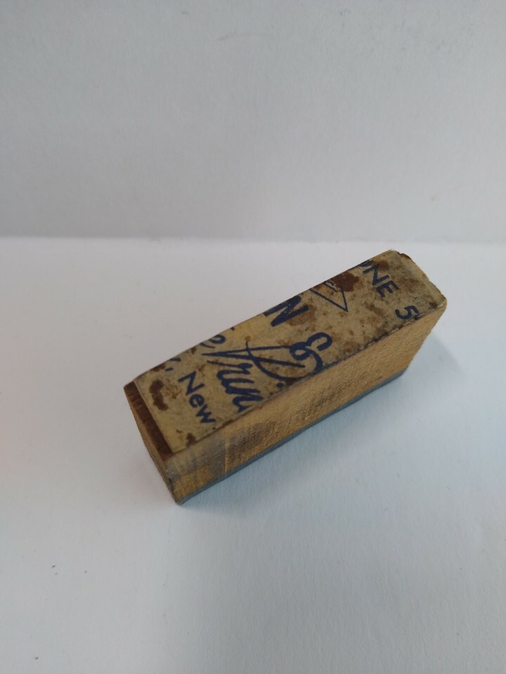 Vintage printers block stamp made of metal and wood. I have tested and photo also shows a ink stamp impression I made. Size is 1.5" x .25" approximate. Good used condition with some paper and writing on one side. This was found in the Atlantic City, New Jersey area and most are from old businesses in Atlantic City, Atlantic County, or the southern NJ area.