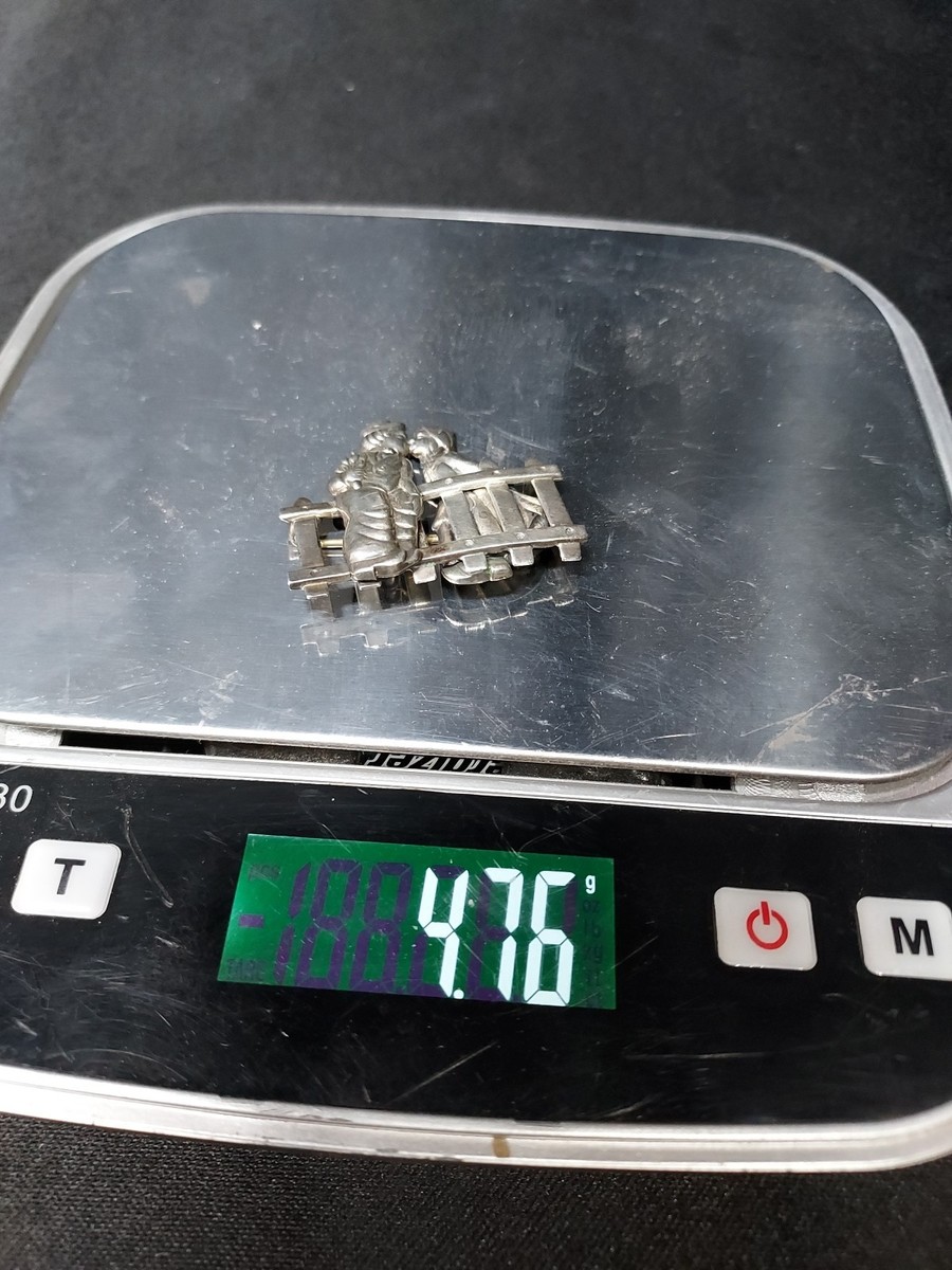 Dutch Couple Kissing On Fence Brooch Pin Signed Beau Sterling Silver 4.76 Grams