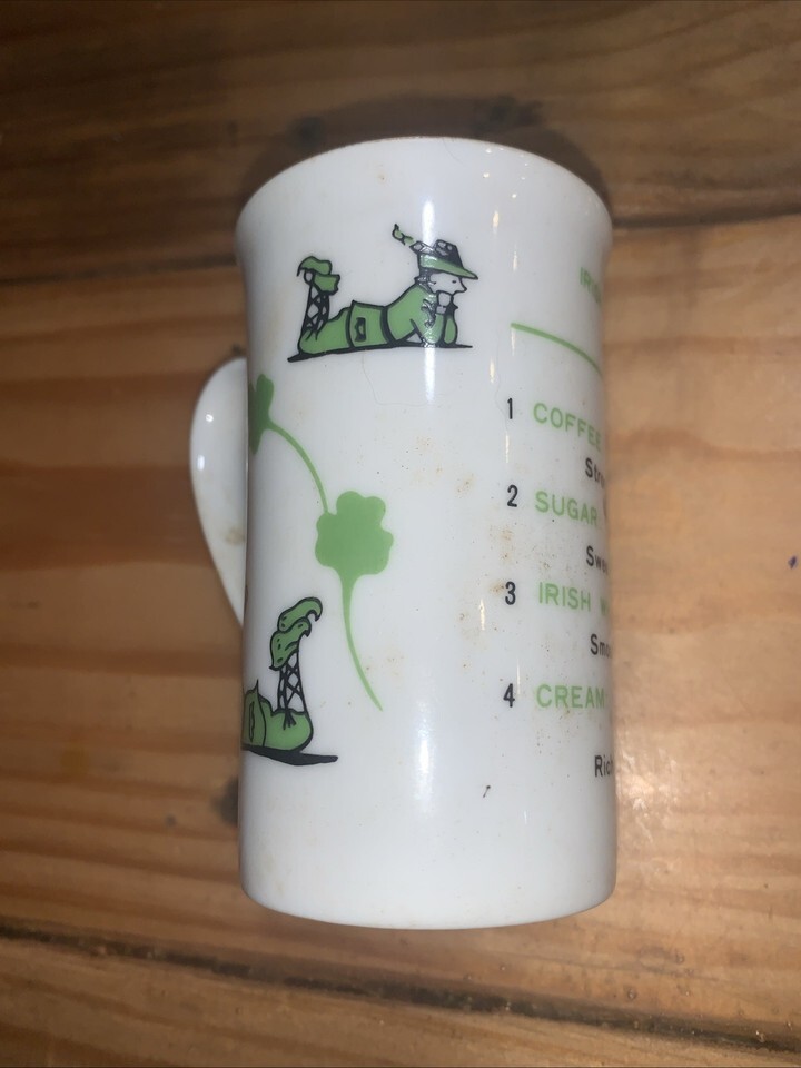 Irish Coffee Mug Vintage Recipe Cup Leprechaun Shamrock