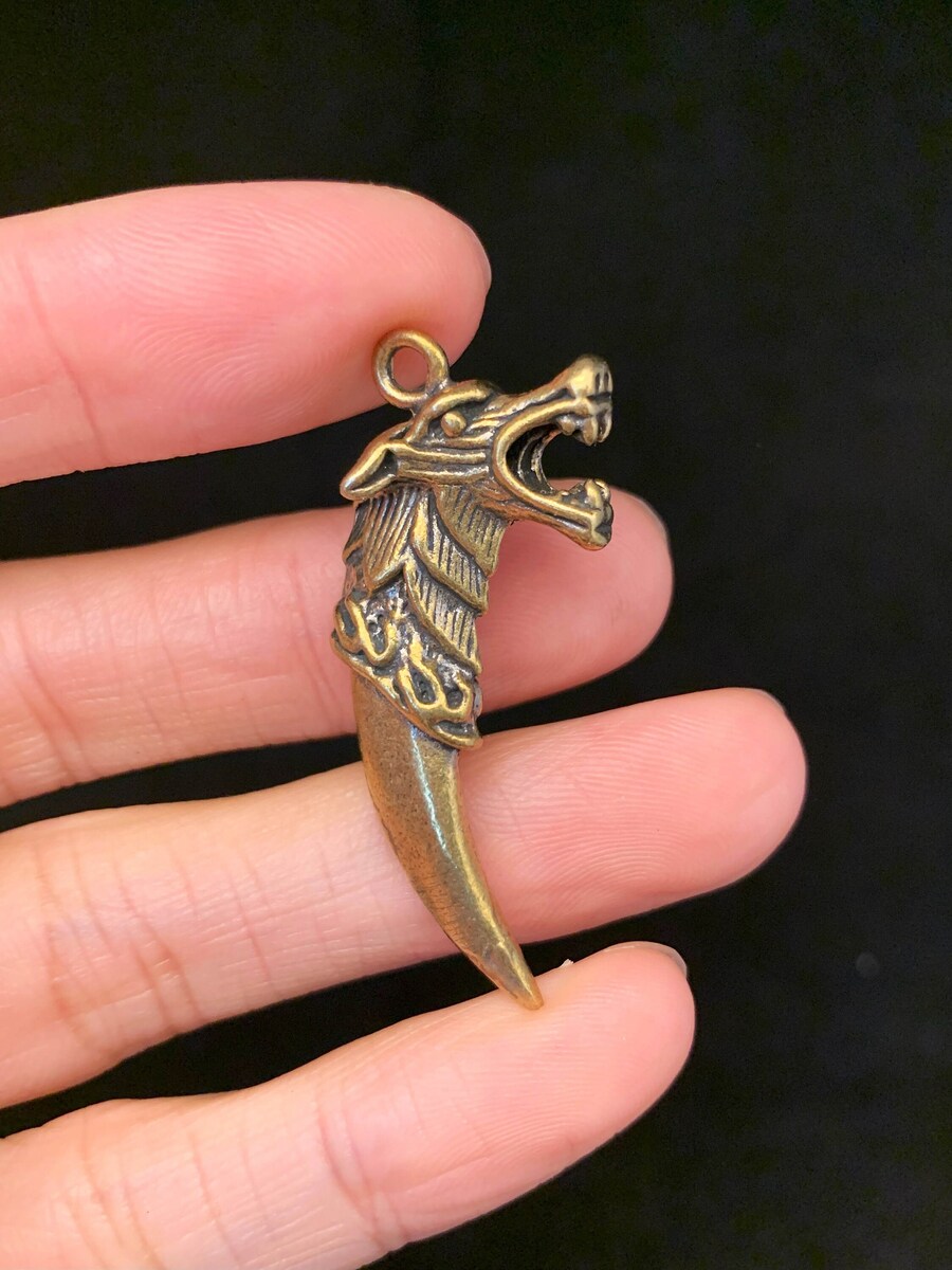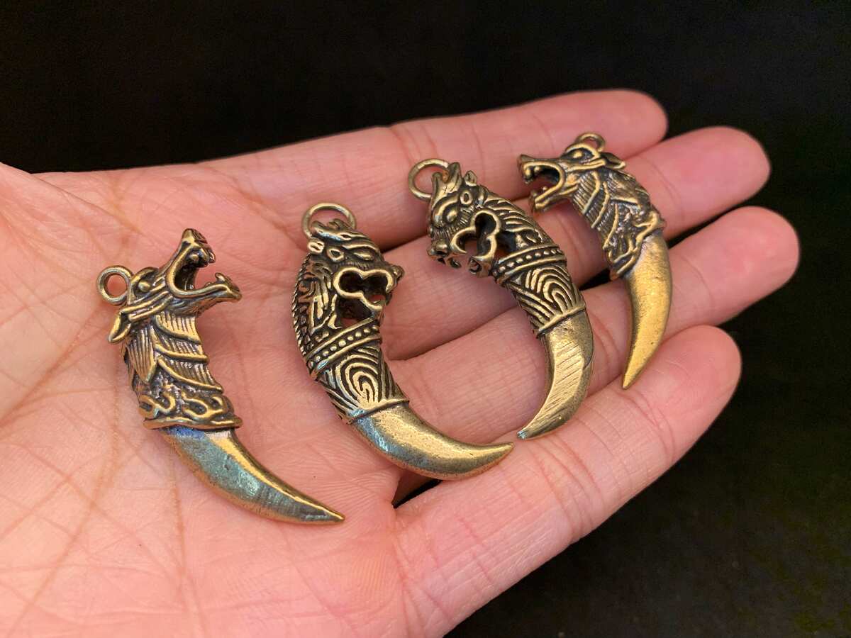 2 Pack Brass Wolf Bead, Knife Lanyard Charm, and similar items