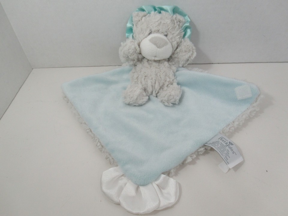 Nat & Jules gray teddy bear blue baby lovey Security Blanket satin