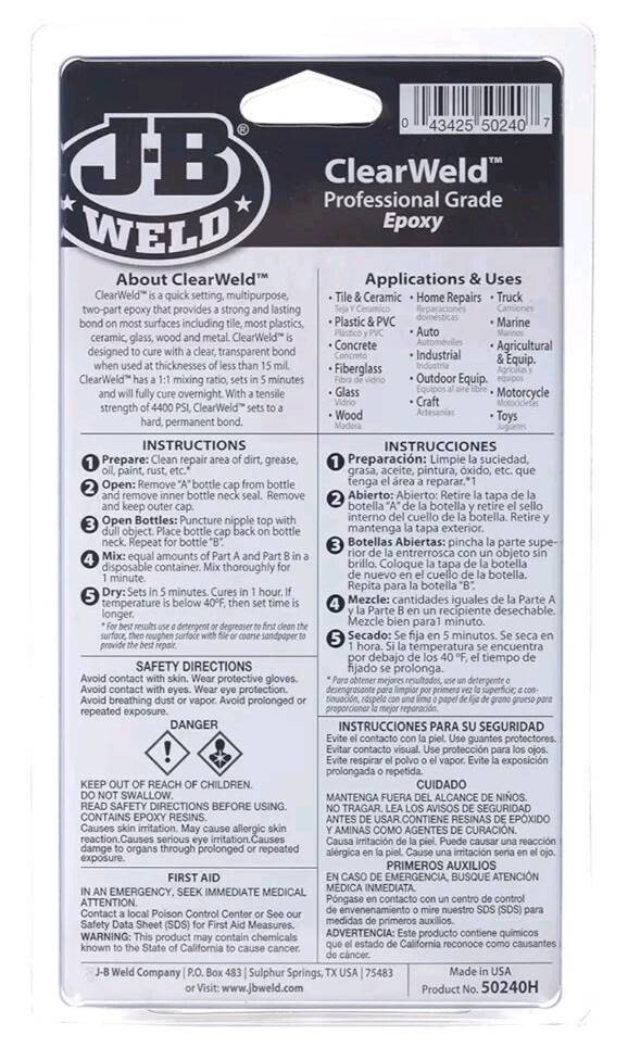 JB Weld ClearWeld Professional Grade Epoxy