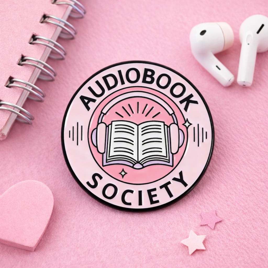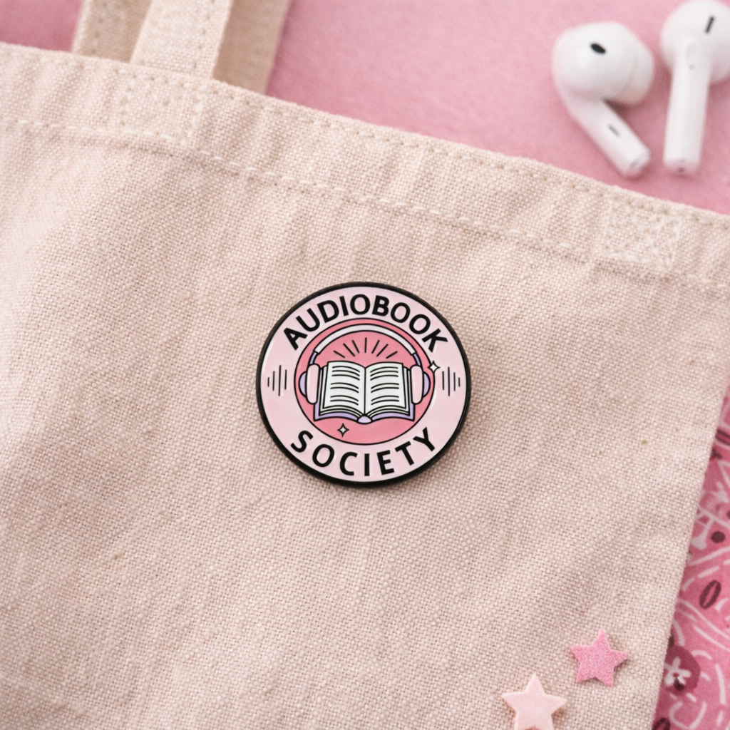 Audiobook Society Enamel Pin ♡ Pink Book Lover Badge ✩ Reader Aesthetic Gift!