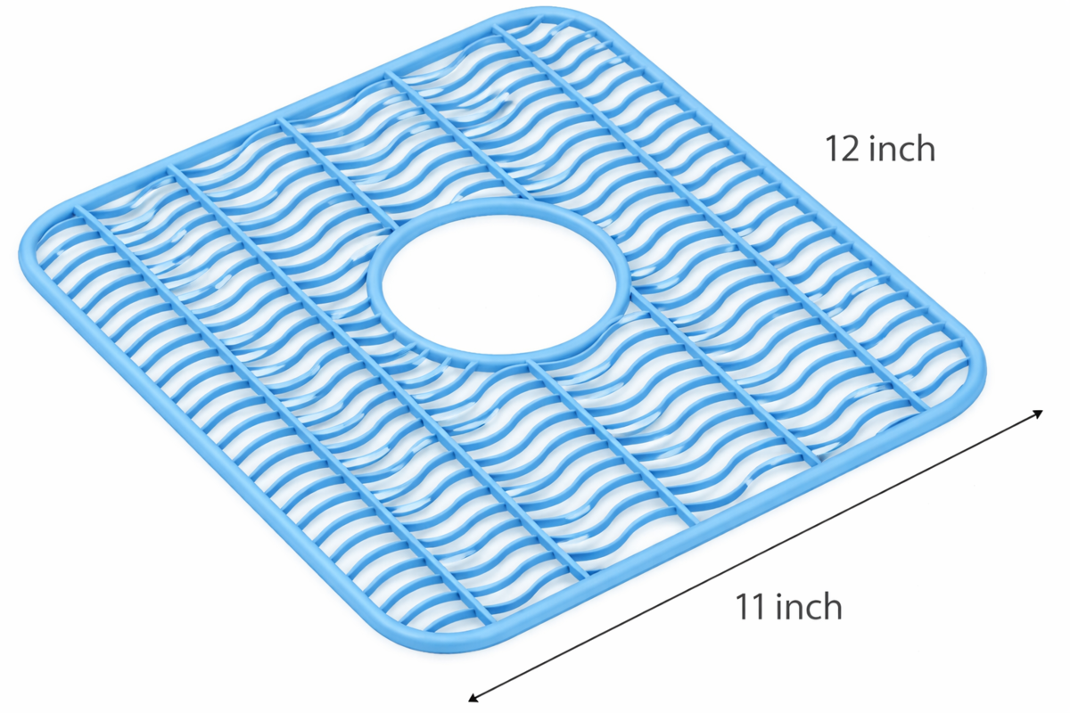 Each mat measures 12 inches x 11 inches and fits most standard kitchen sinks with a center drain layout.