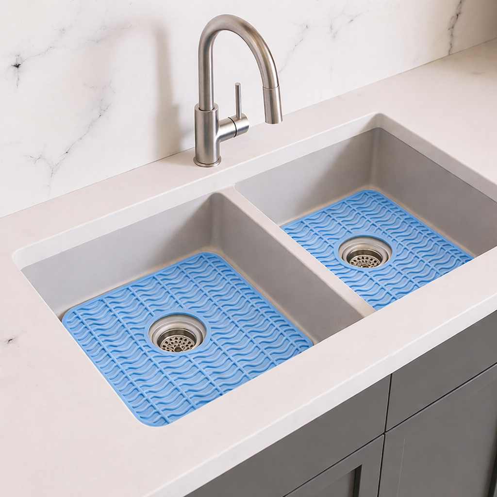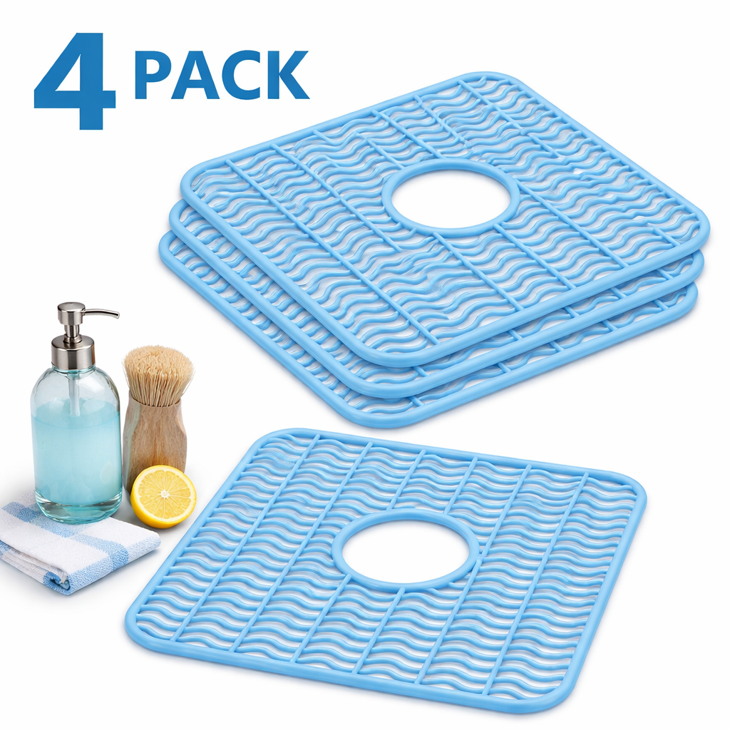 Protect your kitchen sink and dishware with this 4 Pack Sink Protector Set in Light Blue. Designed for everyday use, these mats create a protective layer between your sink surface and dishes to help reduce scratches, scuffs, and wear.