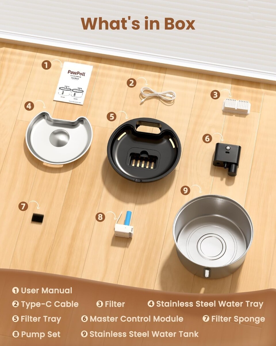 Wireless Design: Enjoy the freedom of placing the pet water dispenser anywhere without the hassle of wires, ensuring a safe environment for your pets.