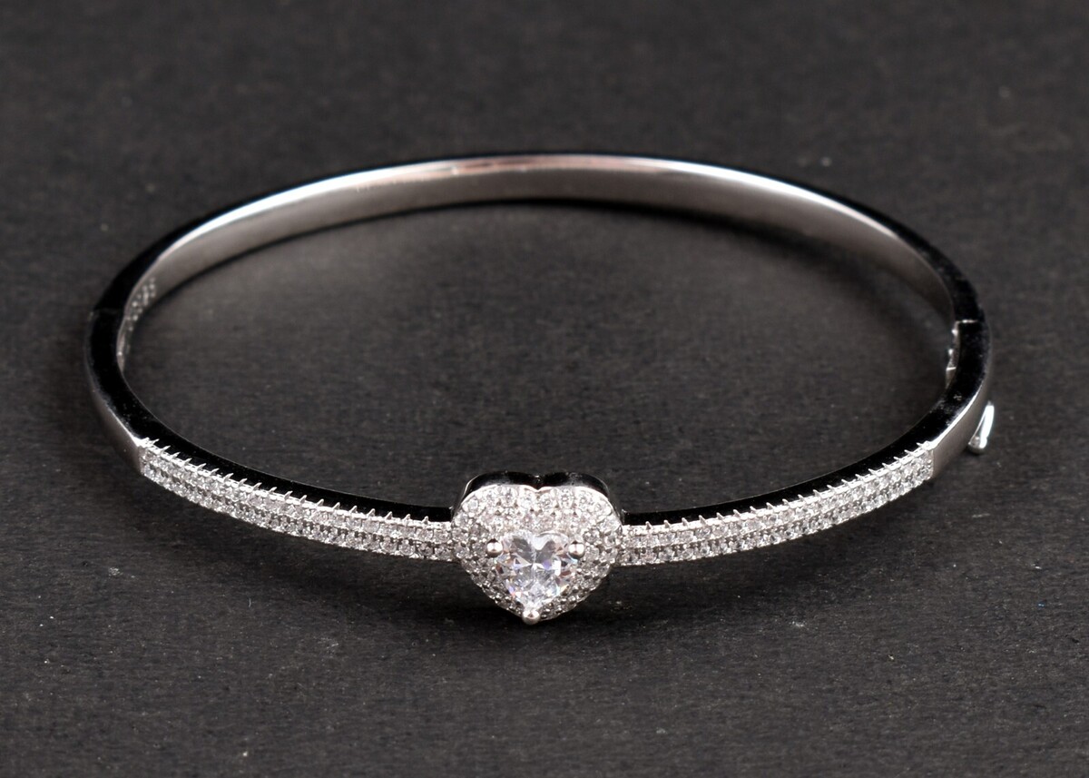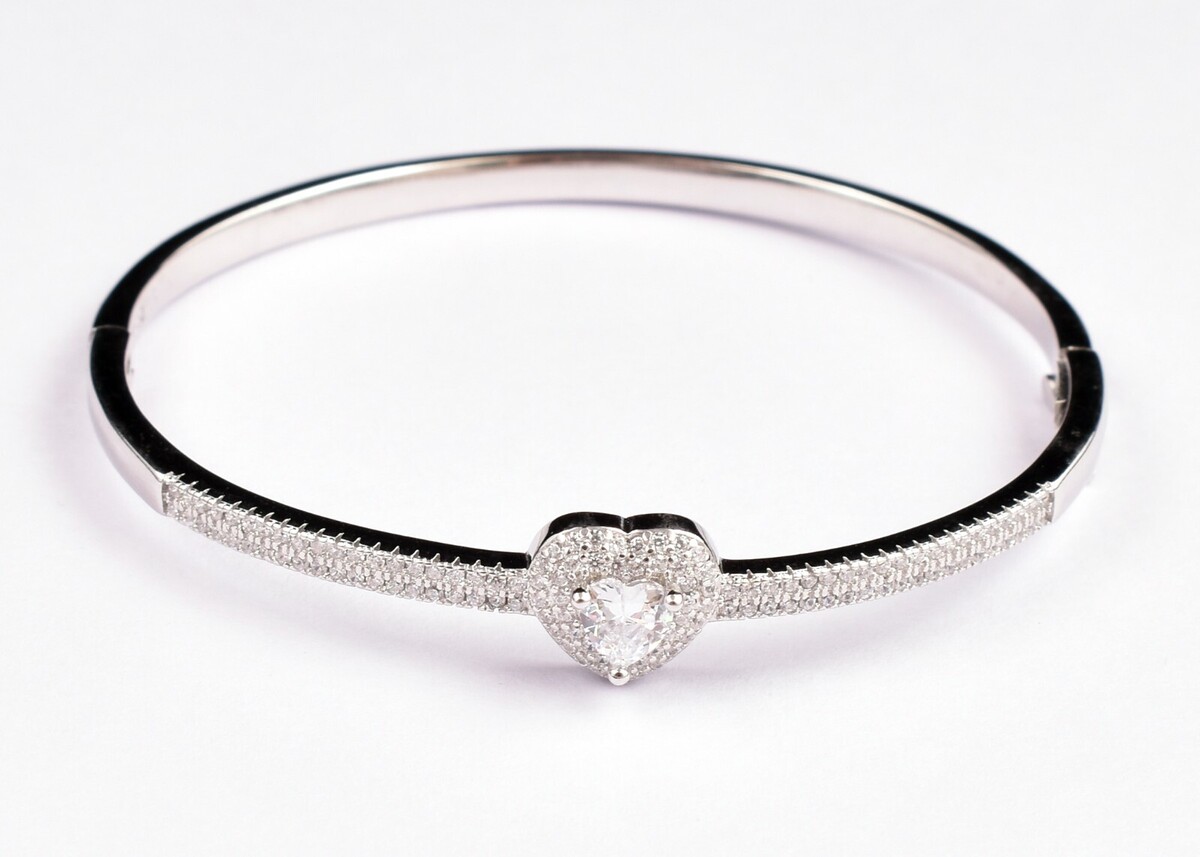 Handcrafted 925 Sterling Silver Zircon Gemstone Gorgeous Heart Bracelet