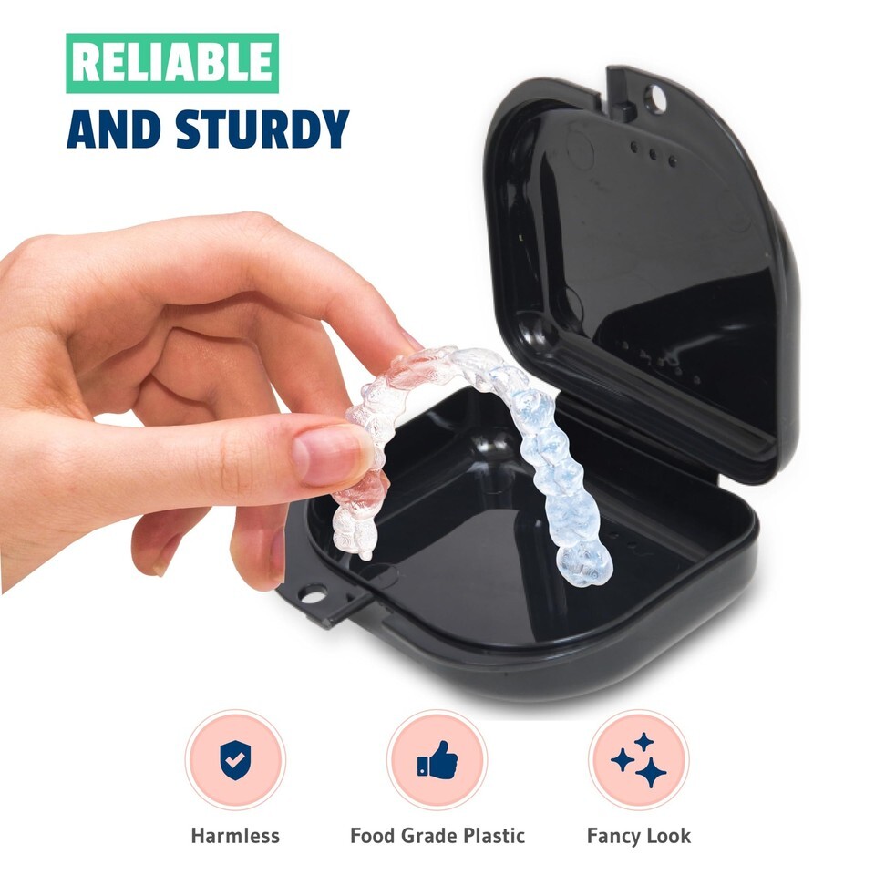 Versatile Color Selection ? Enjoy a variety of options with our pack of 32, featuring vibrant colors including Light Blue, Pink, Purple, White, Yellow, Green, Black, and Blue to suit your style and mood.,Convenient Portability ? Take your essentials everywhere with ease! Our orthodontic aligner cases are lightweight and compact, fitting seamlessly into your pocket or bag while providing ample space to accommodate a whitening tray, denture, aligner, or retainer.,Odor-Free Storage Solution ? Say goodbye to unpleasant odors! Crafted from PP food-grade plastic and equipped with vent holes, our retainer cases prevent moisture buildup, keeping your items fresh and odorless even after prolonged use.,Secure Closure Design ? Prevent messy mishaps with our reliable denture cases! Featuring a tight closure mechanism, our cases keep your belongings securely enclosed, ensuring everything stays in place while on the go.,Hassle-Free Cleaning ? Simplify your cleaning routine! Our night guard cases are dishwasher-safe, eliminating the need for tedious hand washing and saving you time and effort.,Extra Storage Options ? Stay prepared at all times with our pack of 32! Each set includes three additional retainer boxes in every color variation, providing you with ample storage for both home and outdoor use. Keep two on hand for daily use and two for home storage, keeping your essentials neatly organized.