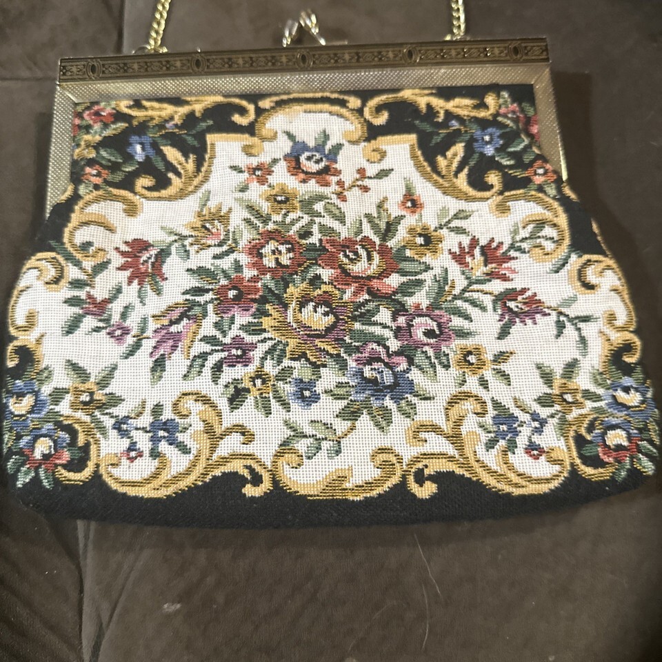 Multicolor Floral Tapestry Handbag Purse Gold Chain Snap Clasp