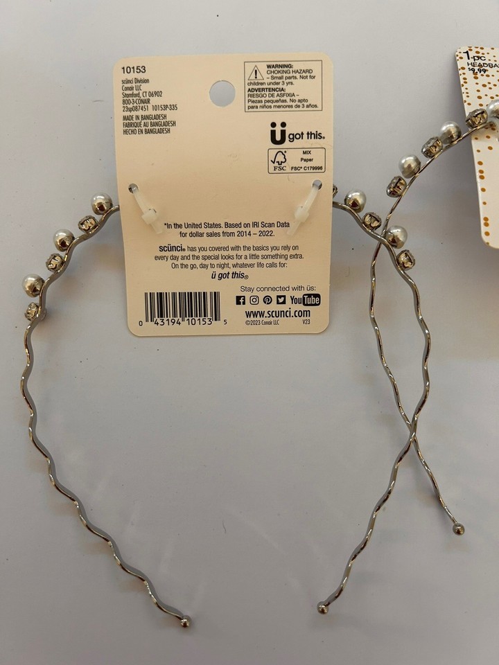 SCUNCI Silver Pearl Jewel headbands For Hair Lot Of 3 Beautiful New! Pageant quality.