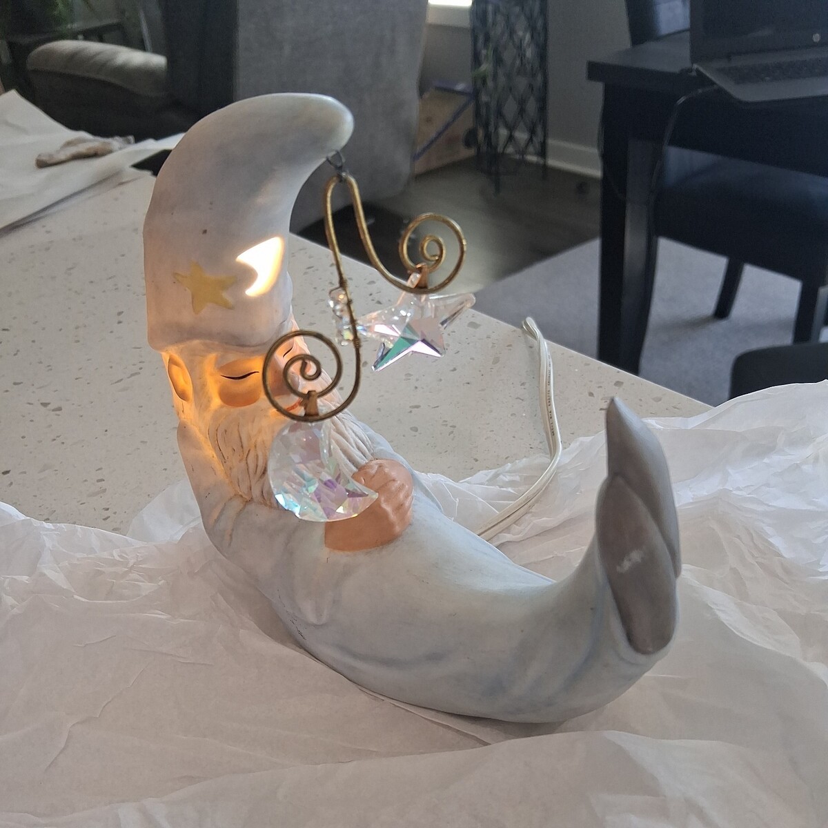 VINTAGE ENESCO 1982 FAITH WICK MERLIN IN THE MOON NIGHT LIGHT FIGURINE
