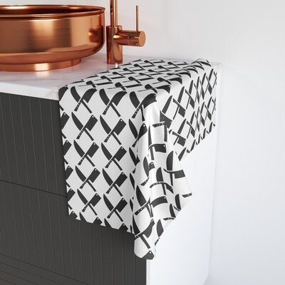 Black Geometric Chef Knives Diamond Pattern Hand Towel | Modern Monochrome