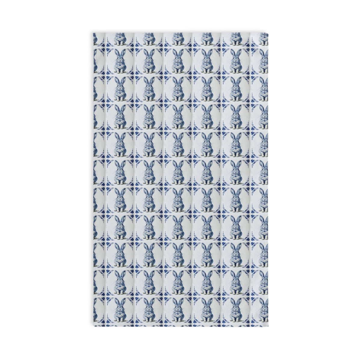Blue Floral Classic Blue Bunny Tile pattern Hand Towel | Vintage Delft inspired