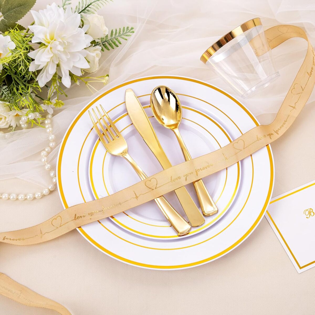 300 Pc White Gold Plastic Dinnerware Set for and 50 similar items