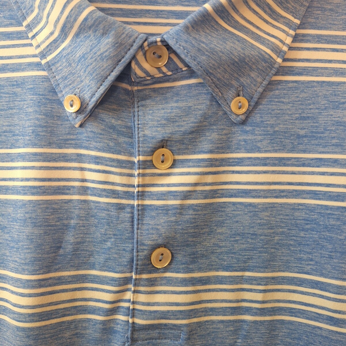 Peter Millar Summer Comfort Polo Shirt Sz XL Button Down Collar IBIS Blue White