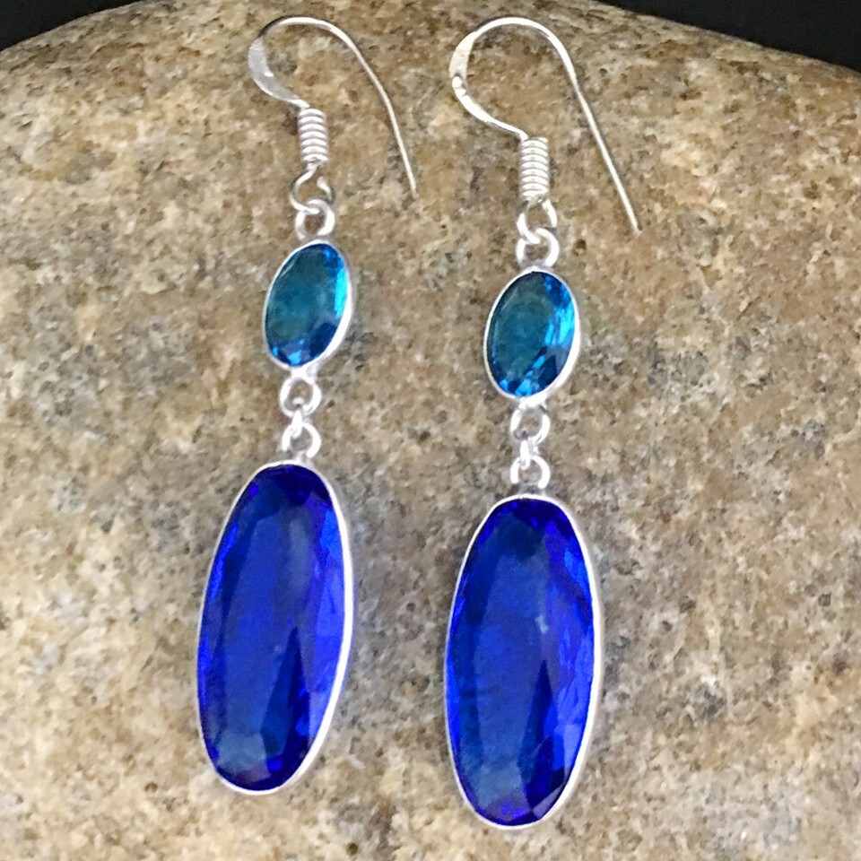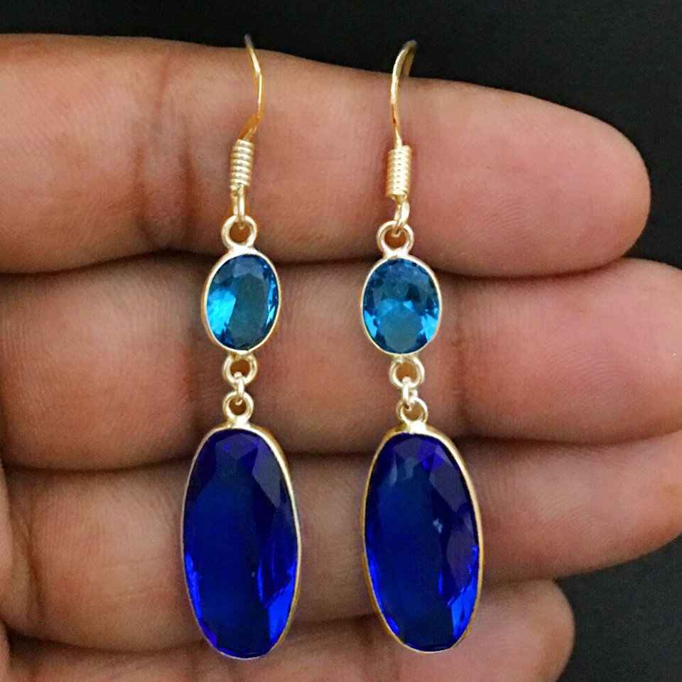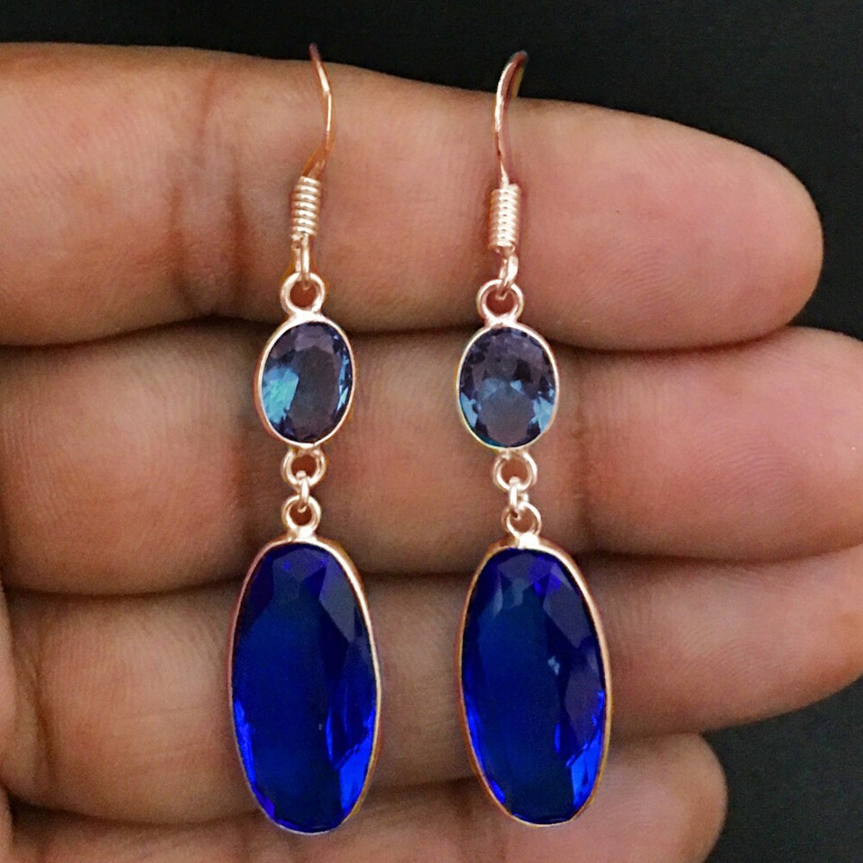 925 Sterling Silver Blue Glass Stone Gold / Rose Gold Plated Earrings Gift
