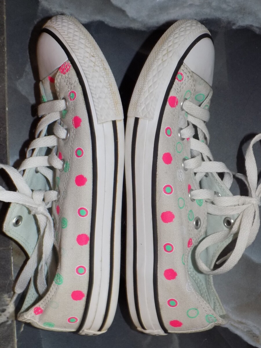 Converse All Star Polka Dot Ox Gray,Pink,&Green Colorway Sneakers Size 3 Juniors
