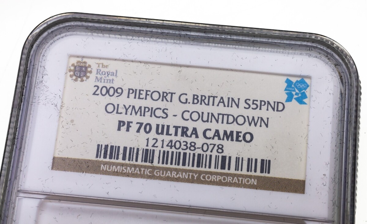 2009 Great Britain S5£ Piefort Olympics Countdown NGC PF70 Ultra Cameo CoA