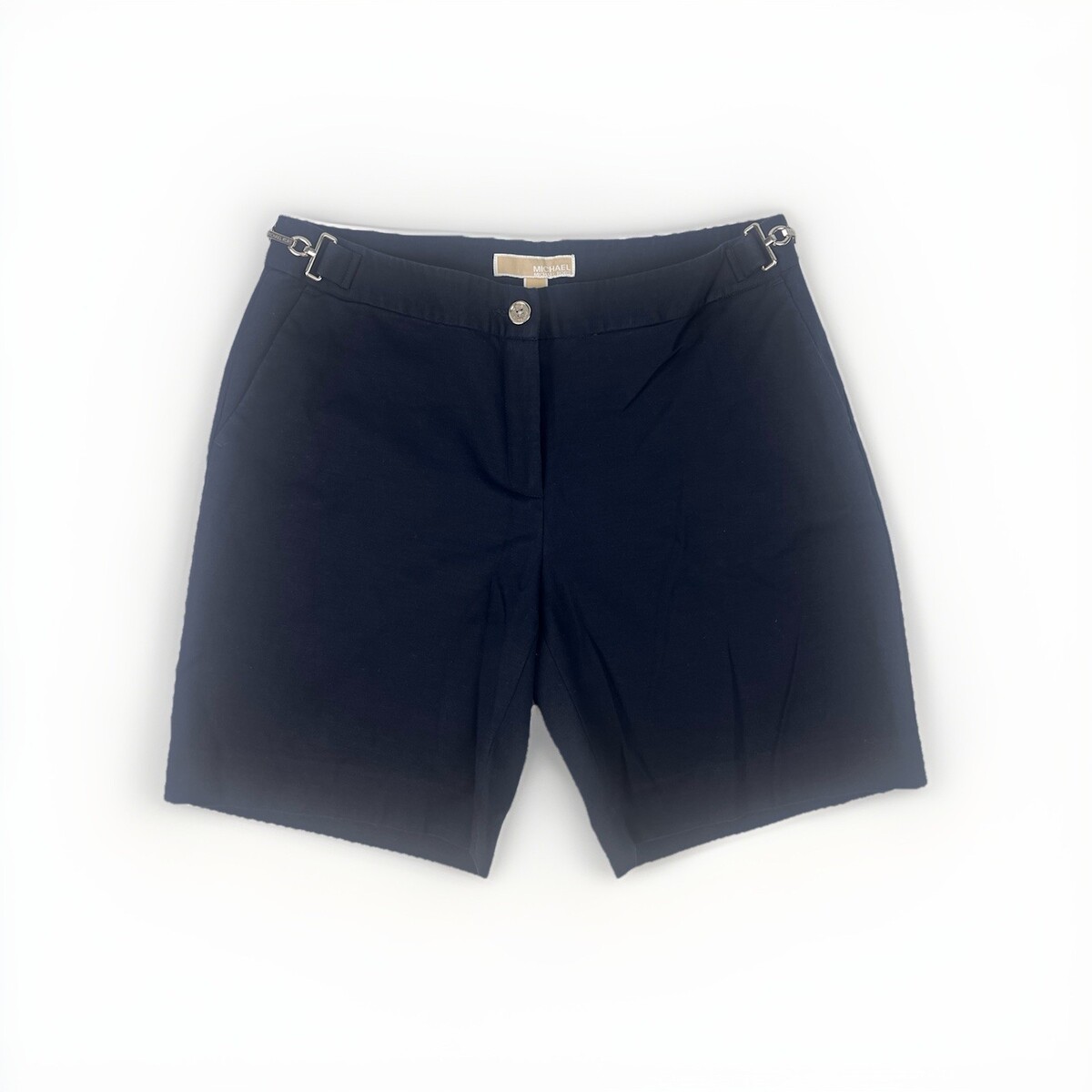 Michael Kors Size 8 Navy Blue Flat Front Shorts With Silver Side Buckles