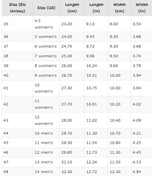 | Taille de chaussure EUR (femme)s: |