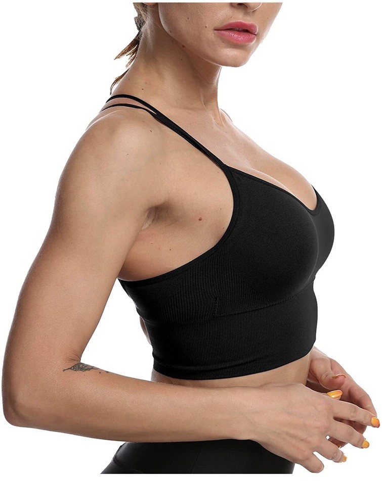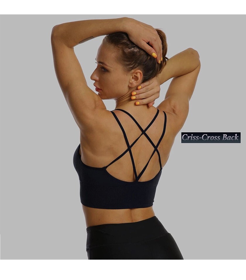 Strappy Sports Bra With Crisscross Back Bra Anti-Tearing Anti-Curling Sm/Md
