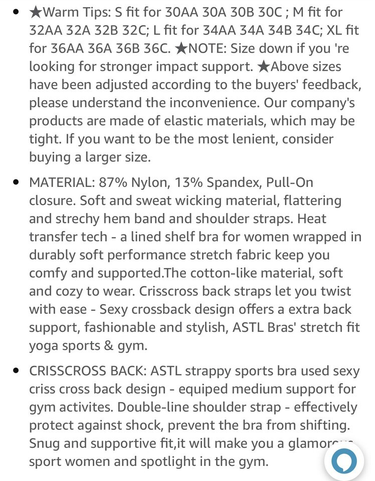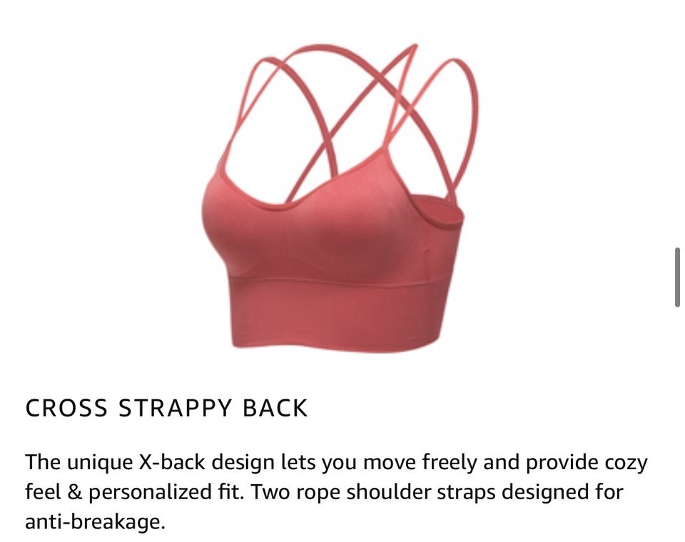 Strappy Sports Bra With Crisscross Back Bra Anti-Tearing Anti-Curling Sm/Md.