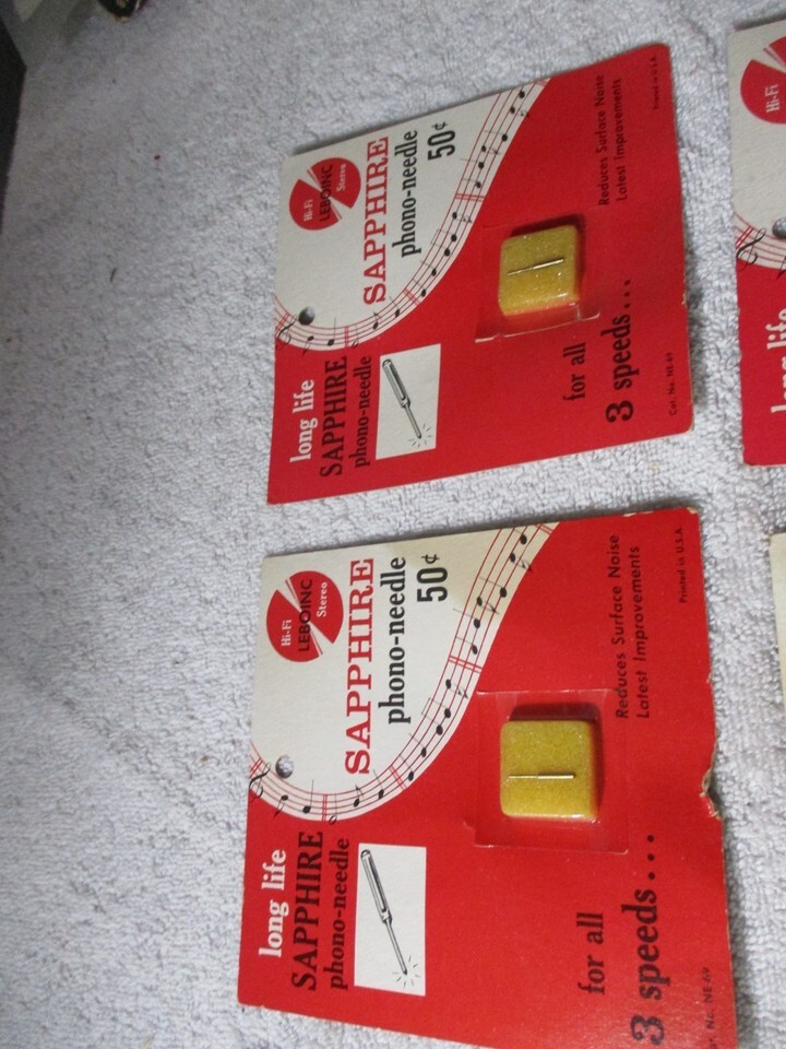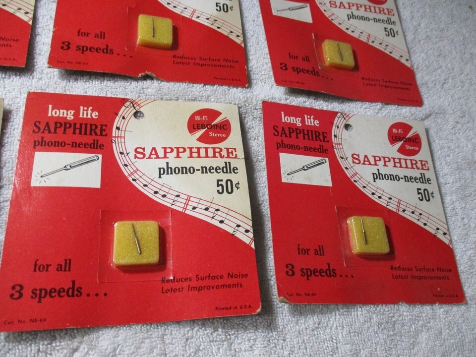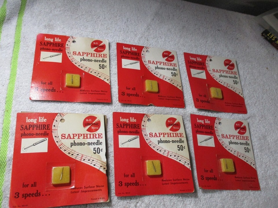 6 VINTAGE- Sapphire Phono-needle Hi-Fi*STEREO 3-SPEED *LEBONIC No. NE-69