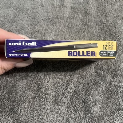 NEW | Uni-Ball Roller Ball Stick Pen, Black Ink, 12 Pens, MICRO 0.2mm | RARE