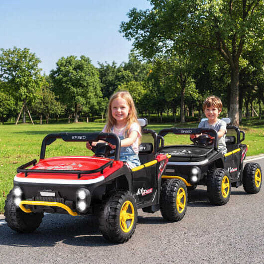 24V Ride on Toy for Kids 2 Seater Ride on Truck Car with Horn Music Story-Red - Color: Red