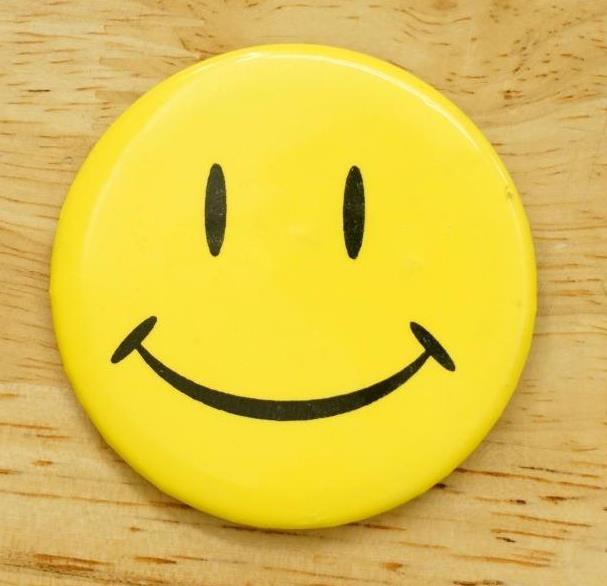 Vintage Hippie Festival Pinback Button Metal 1970s Era Smiley Face. Measures 2.25". across. No smoke or pet odor.